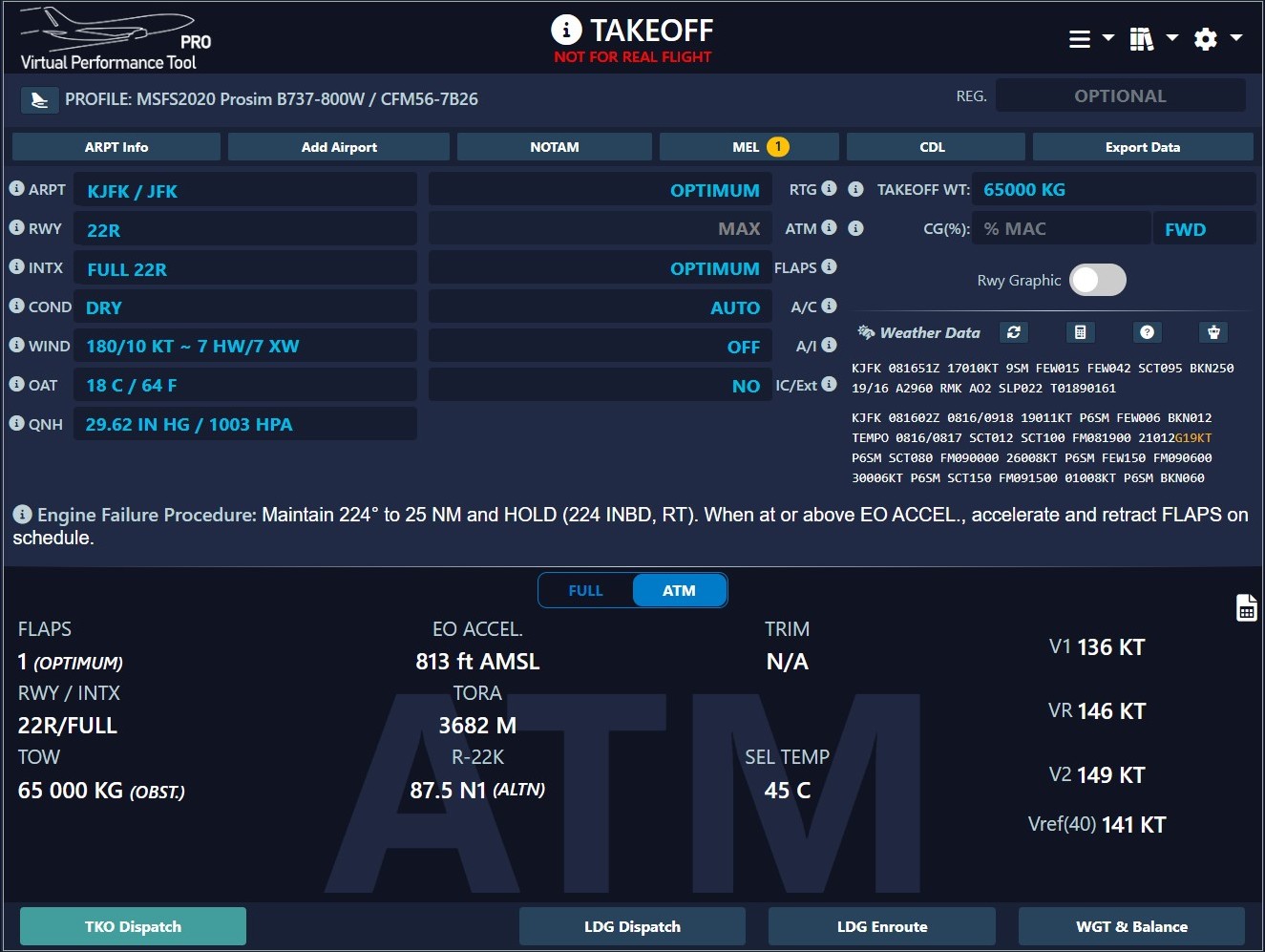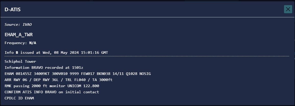 In reality, we utilize ATIS (or D-ATIS) data to populate our performance tool. Understandably, this isn't always feasible in Flight Simulation. Hence, we furnish you with alternative weather information sources.