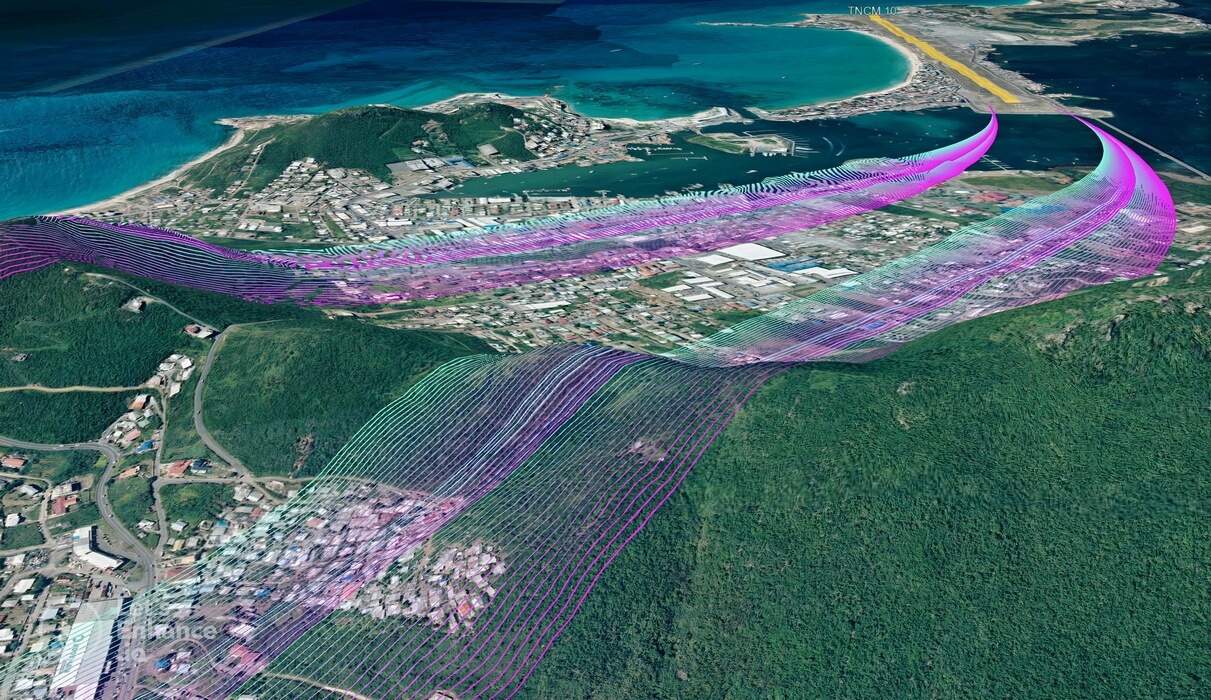 Finally, the so computed net flight path must overfly the obstacles by at least 35 ft.